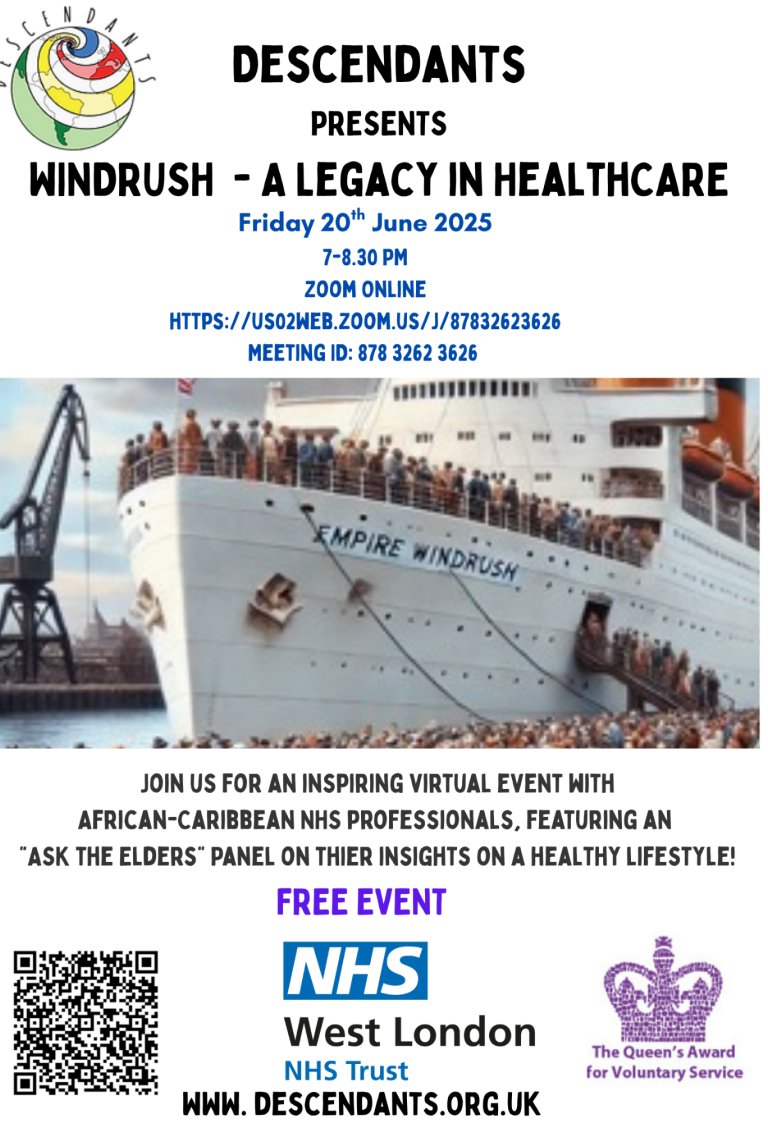 Part 1 of our health awareness event was a virtual gathering hosted by Descendants on Friday 20th June 2025. We celebrated the rich heritage and profound contributions of African-Caribbean NHS professionals supported by West London NHS Trust.
